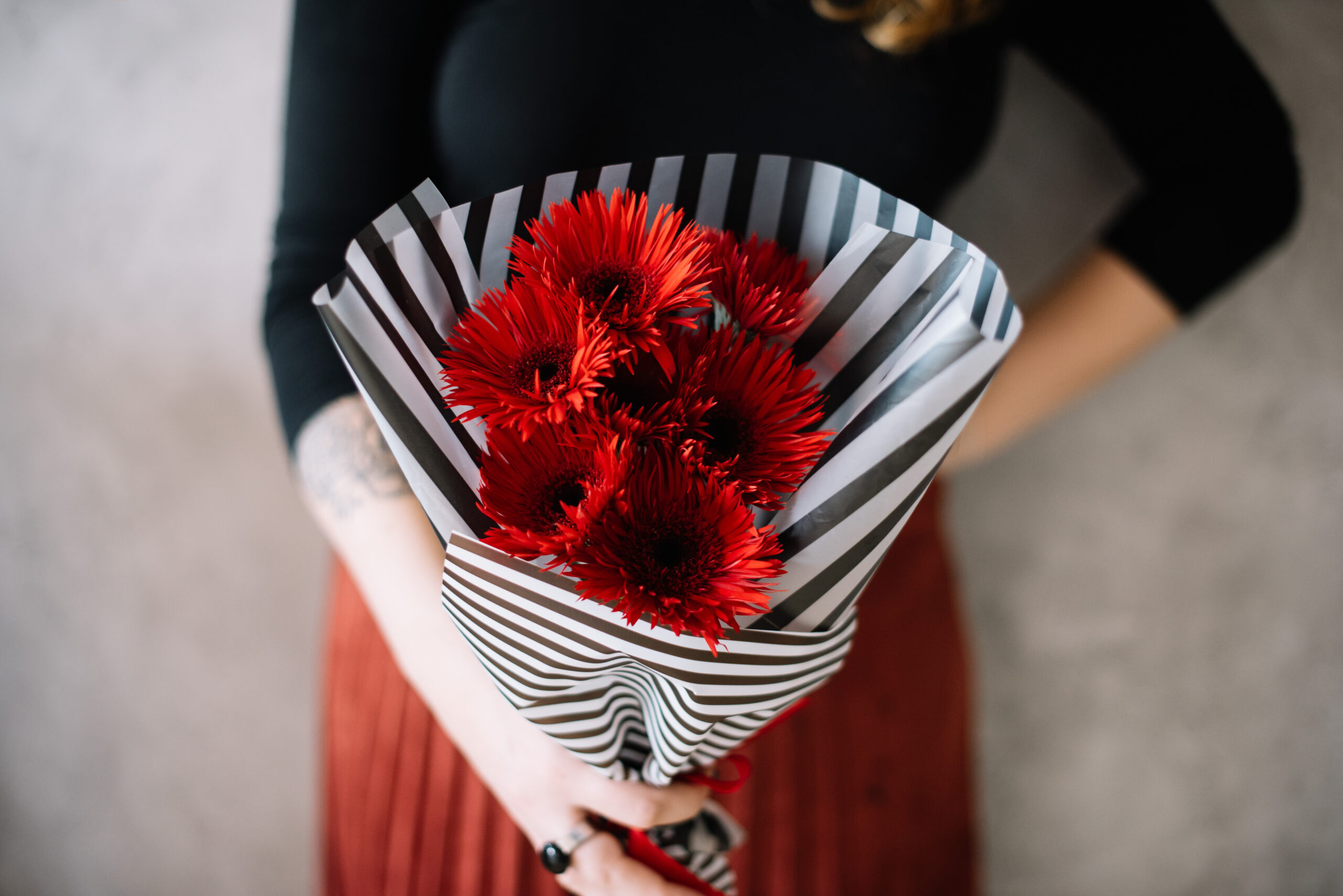 Yellow flowers often symbolise friendship, while pink flowers show appreciation. Red flowers can be romantic or just energetic,c depending on the bloom. If the person loves calm spaces, go with a monochrome look.